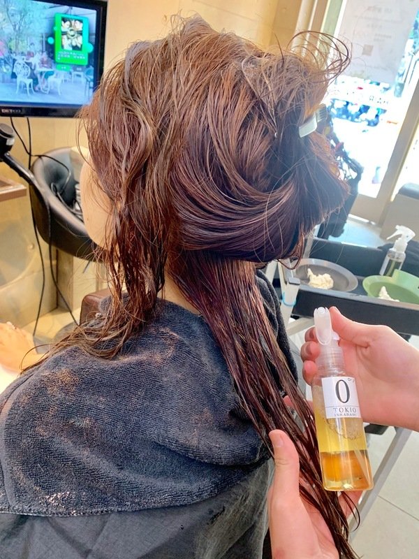 洗過頭之後,助理細心在倪倪頭髮塗上了0劑,這個步驟主要是要讓硬化角蛋白軟化恢復柔軟度。透過0劑的療程後,摸著頭髮瞬間有種柔亮實感。